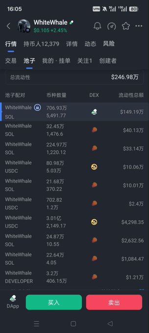 Example: As shown in WhiteWhale, it has high liquidity and multiple SOL pairing pools. Further observe which pool has an increasing SOL percentage;