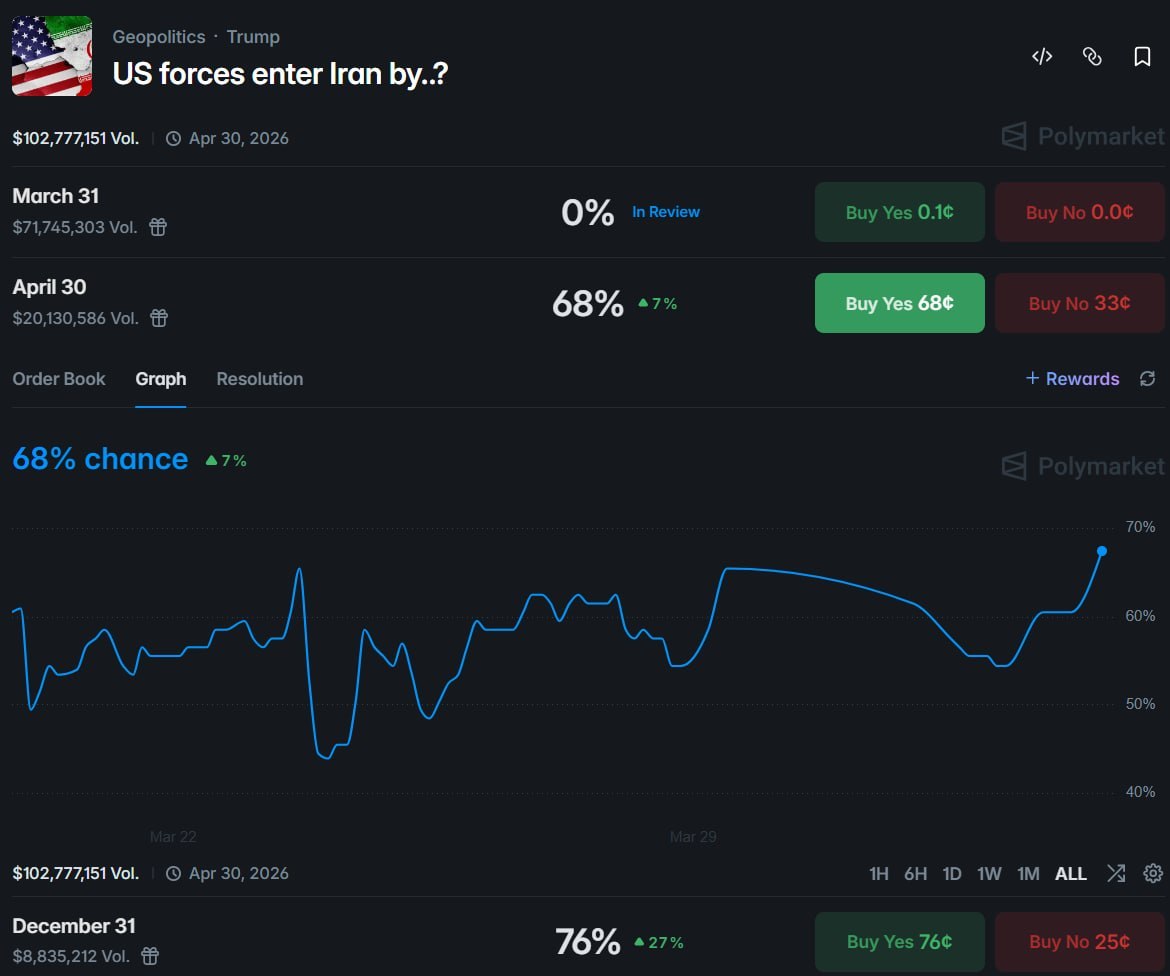 Three smart money accounts have invested $51,000, believing the US-Iran conflict will end by April.