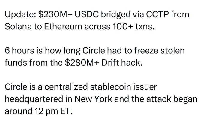 JUST IN: How was $280 million stolen from Drift, the largest perpetual currency DEX on Solana? The Drift team published an analysis of the attack: weeks of preparation, forged signatures, and administrative control taken in minutes. The attacker used durable nonces to pre-sign transactions and execute them weeks later. The protocol is frozen; the stolen funds were bridged to Ethereum.