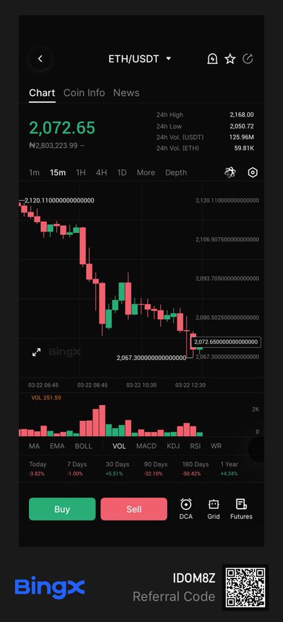 The recent rejection above $2.3K wasn’t just a small pullback. ETH is now sitting much lower and the pressure from recent buyers taking profit is becoming visible on the chart. A deeper correction can’t be ignored. #Ethereum #BingX
