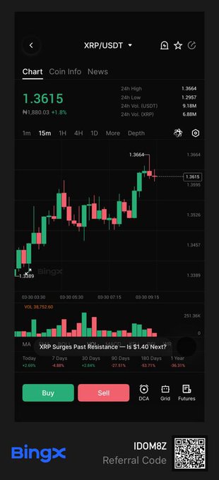 $XRP sitting in a tight range near $1.36. Rising leverage plus weak momentum equal unstable setup. Break below $1.35 could accelerate liquidations fast. #XRP #CryptoMarket #BingX