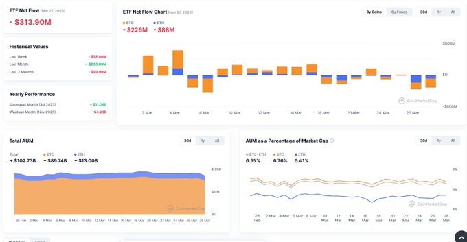 A $300M weekly outflow shows that the biggest institutional players aren't immune to taking profits. Short-term sentiment is cooling off after a wild March. I wonder if this is just a healthy correction or if the caution sticks around for a while. #BingX $BTC #Bitcoin