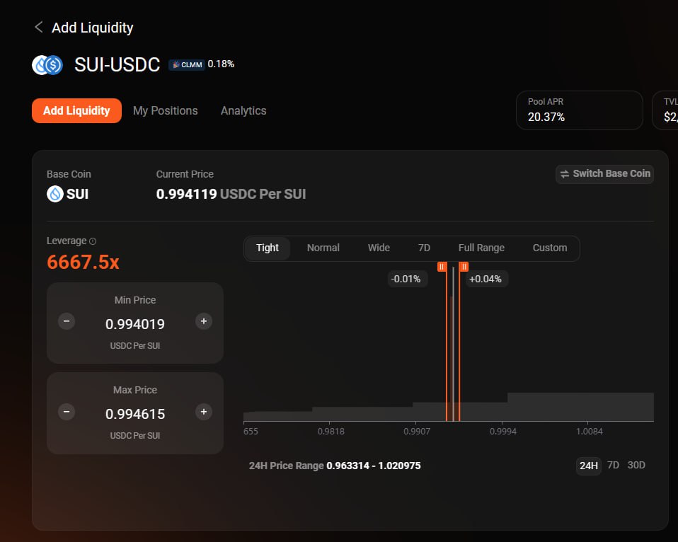 🟠 Let's say you open a Sui - USDC pool and then open a V3 pool with a -5% downward range and a 5% upward range. (Sui and USDC are invested in equal amounts.)