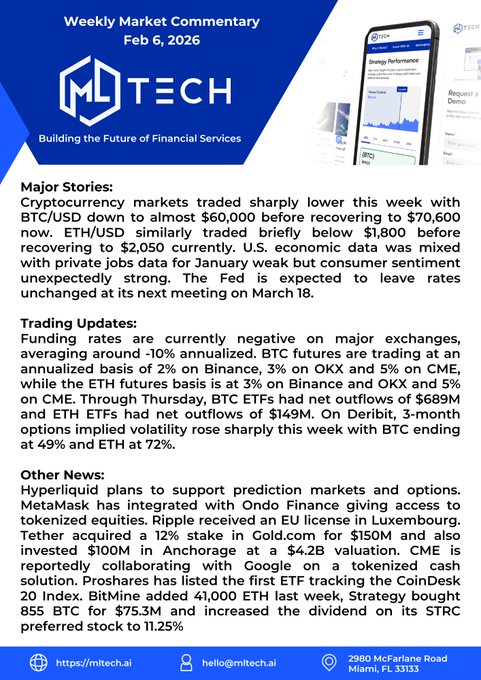 [2/3] (Reuters | PANews) Market Analysis 1. BTC and ETH rebounded from the sharp drop: BTC returned to the $67,000-$69,000 range, and ETH returned to around $2,000. Multiple platform quotes show that BTC rebounded and once stood above/broke through $69,000, while ETH returned to about $1,999-$2,002. The previous intraday low and the rebound range were inconsistent, indicating that volatility is still high. (CoinDesk | TechFlow | Odaily) 2. Deleveraging continues: The scale of margin calls across the network varies, but all are at historically high levels. CoinGlass statistics show that approximately $2.242 billion in liquidations occurred in the past 24 hours; CoinAnk statistics show approximately $1.662 billion. The difference stems from the exchange sample and statistical methods used. (TechFlow | PANews) 3. Trend Research is massively selling/transferring ETH to reduce leverage and repay debts. On-chain monitoring points to continuous selling pressure. Multiple monitoring sources indicate that it is related to leveraged positions on Aave. In the past few hours/15 hours, there have been multiple concentrated transfers to Binance (such as 20,000 ETH, 30,000 ETH, etc.), and there are different estimates that "more than 410,000 ETH have been sold since February 1, with a total loss of about $700 million". Overall, it points to the fact that institutional deleveraging is still underway. (TechFlow | BlockBeats | PANews) 4. On-chain Fund Flows: BlackRock and Grayscale-related addresses transferred BTC/ETH to Coinbase Prime, sparking discussions about "redemption/rebalancing or potential selling pressure." Monitoring shows that BlackRock-related addresses deposited approximately 3,948 BTC and 5,734 ETH into Coinbase; Grayscale also saw approximately 1,364 BTC transferred into Coinbase Prime. These transfers need to be assessed in conjunction with ETF redemption and market-making processes. (TechFlow | Odaily) 5. Indicators and Institutional Views: Glassnode and CryptoQuant have indicated that the market is currently in a "period of extreme/near the end of a bear market," but a rebound still needs time to be confirmed. Glassnode stated that BTC's "Yardstick" has hit an all-time low, which historically often corresponds to a narrowing of downside potential. CryptoQuant mentioned that the loss-making BTC supply is close to the level at the end of the last bear market, and some opinions suggest that the lack of a substantial rebound could trigger a chain reaction of forced selling. (BlockBeats | BlockBeats | PANews) 6. Macroeconomic and Risk Appetite: Michigan consumer confidence rebounded and inflation expectations declined; volatility in safe-haven assets (gold/silver) intensified. The University of Michigan's preliminary February consumer confidence reading was 57.3, higher than expected; the preliminary 1-year inflation expectation reading was 3.5%, lower than expected; during the same period, gold rose to nearly $4,960/ounce, and silver also experienced significant fluctuations, indicating cross-asset deleveraging and linkage risks. (TechFlow | Odaily | PANews) ━━ Project Updates ━━ 1. ENS halts proprietary L2 “Namechain” development: ENSv2 will be directly deployed on the Ethereum mainnet. ENS stated that the Fusaka upgrade is expected to significantly reduce registration costs after increasing the gas limit, and has opened a public alpha test for the new version of the ENS App/Explorer. (Foresight News) 2. Ronin: Saigon testnet has completed its migration to Ethereum, and the mainnet is planned to be upgraded to Ethereum L2 in the first half of 2026. The upgrade window points to Q1–Q2 of 2026, reflecting the convergence of the game chain towards the Ethereum Rollup route. (BlockBeats | Foresight News) 3. Polymarket's parent company has applied for the "POLY/$POLY" trademark. Executives have confirmed plans to issue native tokens and airdrop the trademarks to cover financial and crypto market software, tokens, and platform services. The timeline for the tokens has not yet been disclosed. (The Block | Odaily) 4. Relay Protocol completes $17 million Series B funding round: plans to launch "instant cross-chain settlement" Relay Chain. Archetype and USV led the investment, focusing on cross-chain settlement infrastructure. (PANews) 5. Strategy discloses it will launch a "Bitcoin security plan" to address quantum uncertainty. Saylor stated that it will collaborate with the cybersecurity/cryptography/Bitcoin security community to advance the project, viewing it as a long-term engineering challenge rather than an immediate threat. (CoinDesk | TechFlow) 6. Ripple releases XRPL institutional-grade DeFi blueprint: positioned as "regulated real-world finance" It emphasizes recent upgrades and upcoming features to promote the adaptation of XRPL in institutional scenarios and compliant financial infrastructure.
