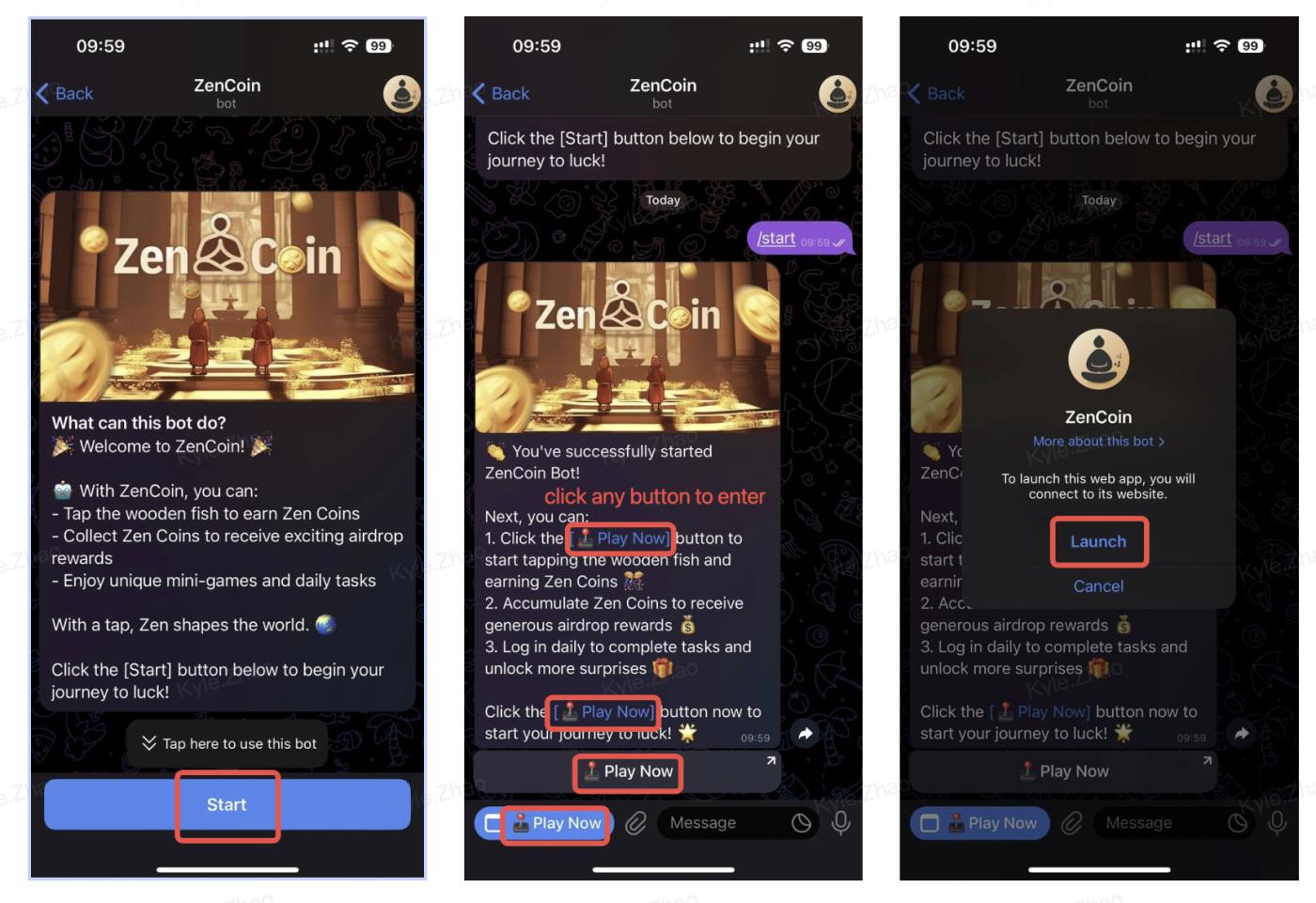 1.1 Open the game link: [https://t.me/theZencoin_bot?start=r_5452076695]