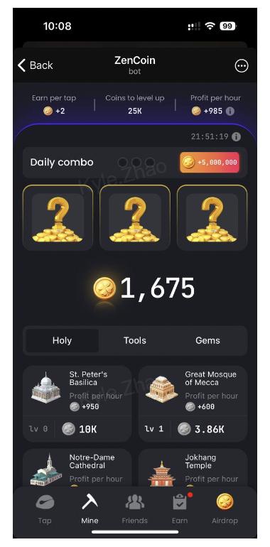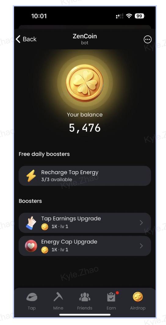 - [Tap Earnings Upgrade]: Increase the ZenCoins you can earn per tap.