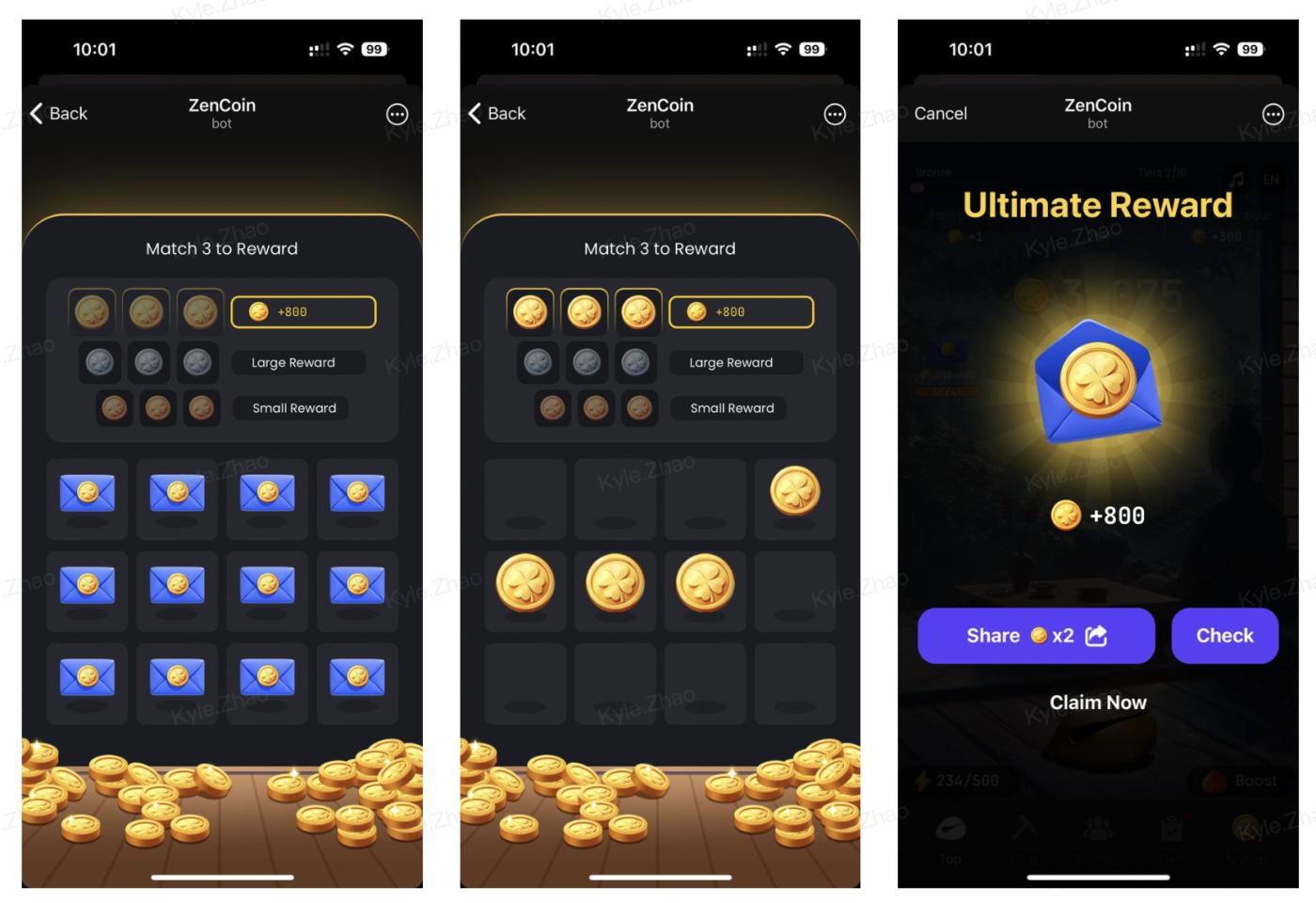 - Random Rewards From Reward Letter: Users can receive random rewards once they accumulate enough ZenCoins by clicking the envelope on the homepage or checking [Earm] - [Reward letter], to claim random rewards.