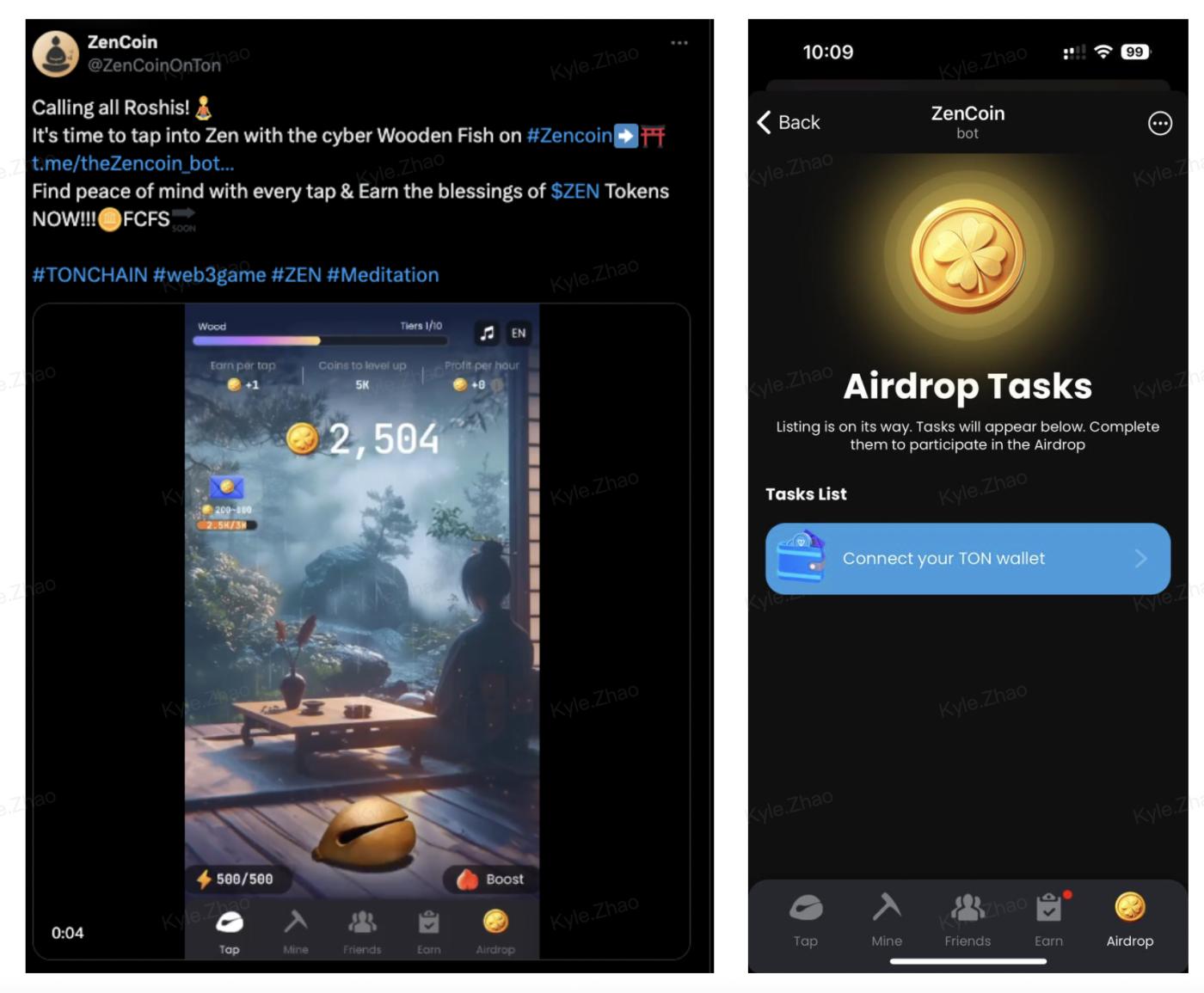 Zencoin's official Twitter ([https://x.com/ZenCoinOnTon]mentions "Earn the blessings of ZEN Tokens," indicating the upcoming airdrop event. And you can link your TON wallet for future airdrops inside the game now.