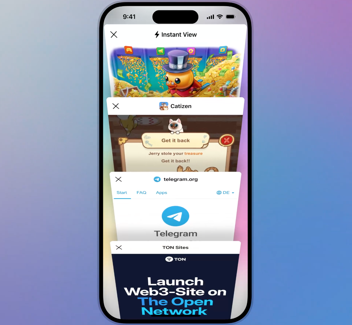 TON Sites allows users to switch websites or chat rooms with one click, making it easier to browse news and reply to messages. The built-in browser also supports search, bookmarking, overlapping tabs and other functions.