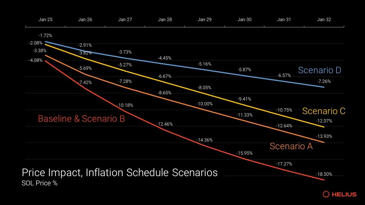 Solana price impact projections based on four hypothetical changes to the inflation schedule.