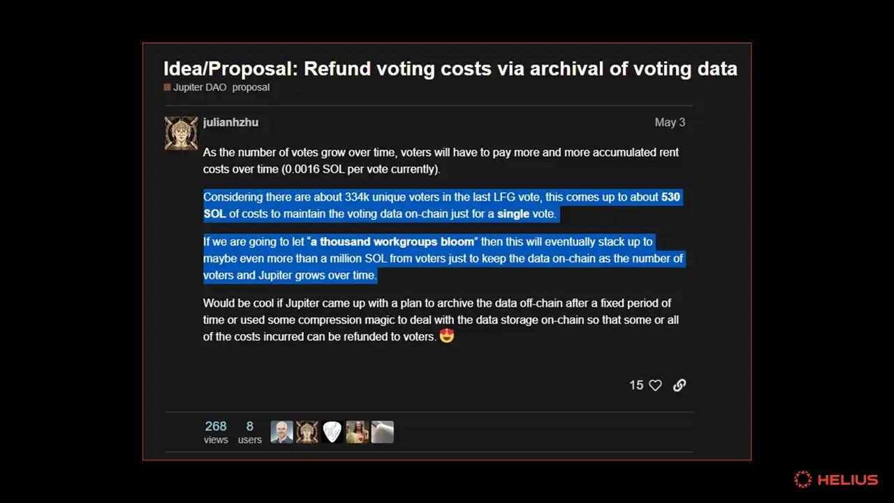 A post on the Jupiter DAO forum points out the problem of high rental costs caused by large-scale on-chain DAO voting