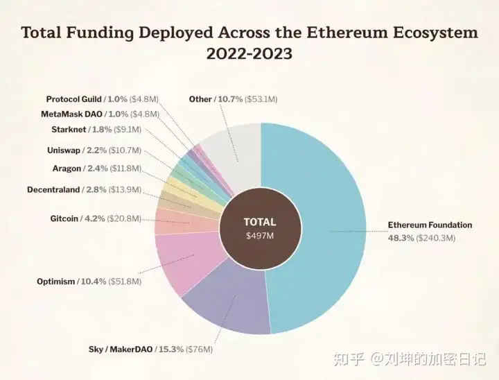 From 2022 to 2023, the Ethereum ecosystem deployed $497 million to support projects across the entire community.