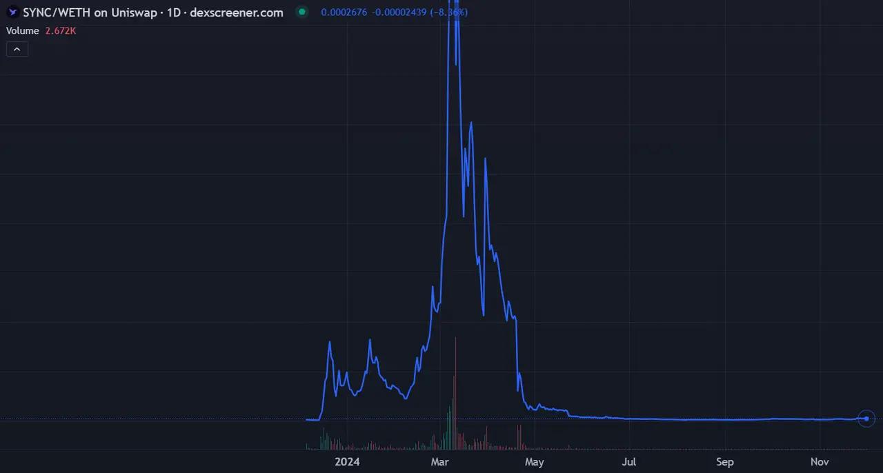 The candlestick chart of this typical project SyncusDAO