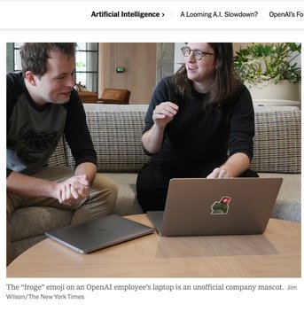 $Froge Is it the official meme mascot of OpenAI? I have found more than 10 clues, and it seems that Froge is more than just a mascot in OpenAI.. 1. The New York Times magazine wrote in an interview with OpenAI that the "froge" emoji on an OpenAI employee's laptop is an unofficial company mascot. nytimes.com/2023/11/22/technol...…