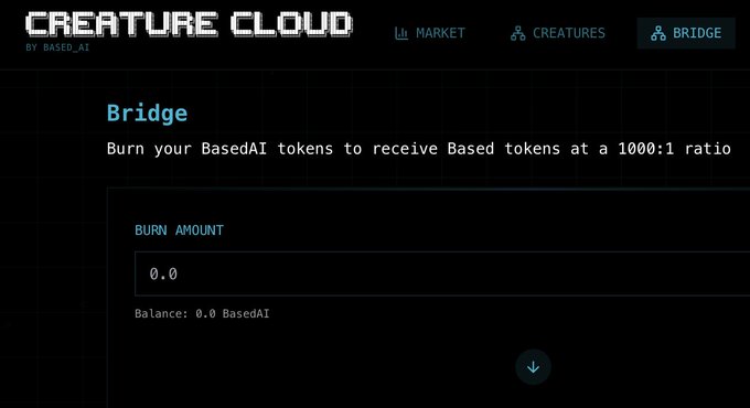 - The upcoming bridge from Ethereum to BasedAI will be hosted on the CreatureCloud on the official "http:/getbased.ai" domain. Always check the domain.