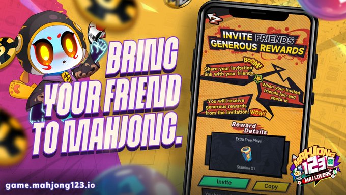 Mahjong123 seems like a game to be played alone, but those who think so are mistaken. You can bring your friends into an environment where you will compete together. Invite your friends: t.me/Mahjong123Bot