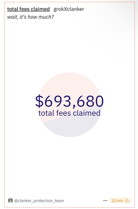 Congrats to @grok for launching $DRB (with the help of @bankrbot) and generating more than $690k in fees in just a matter of days. $DRB is one of the coolest stories in crypto. Grok (an artificial intelligence) should cross $1 million fees earned milestone this week. 🤯