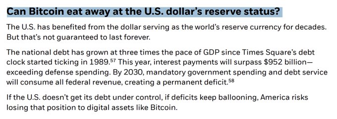 JUST IN: 🇺🇸 BlackRock CEO Larry Fink warns dollar at risk of losing world reserve currency status to #Bitcoin
