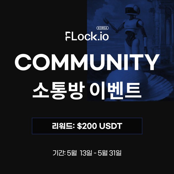 🎉 @flock_io_korea Community Interaction Room Event 🗓 Event Period: 5/1 ~ 5/31 ⏺ Participation Method: t.me/FLockioKoreaANN/204… 🏆 Rewards - Top 20 participants will receive 200 $USDT 👉 http:/train.flock.io #FLock #FLockioKorea #Event