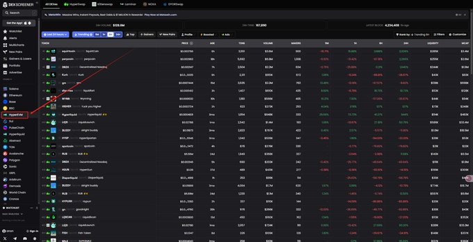 Watch the market and other things at Eagledexscreener.com/hyperevm上看,将链切换成HyperEVM就行了,同样在这里也能发现一些新币。