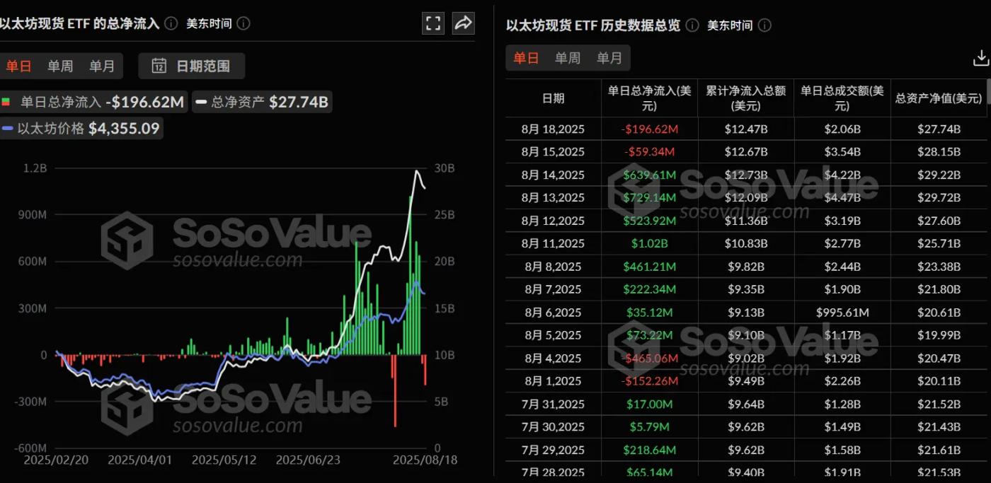 The turning point came on August 11th, 2025, when the Ethereum ETF saw its first single-day net inflow exceeding $1 billion. BlackRock's ETHA attracted $640 million, while Fidelity's FETH drew $277 million, highlighting the capital suction effect of these two giants and signaling the institutional transformation of Ethereum ETF.
