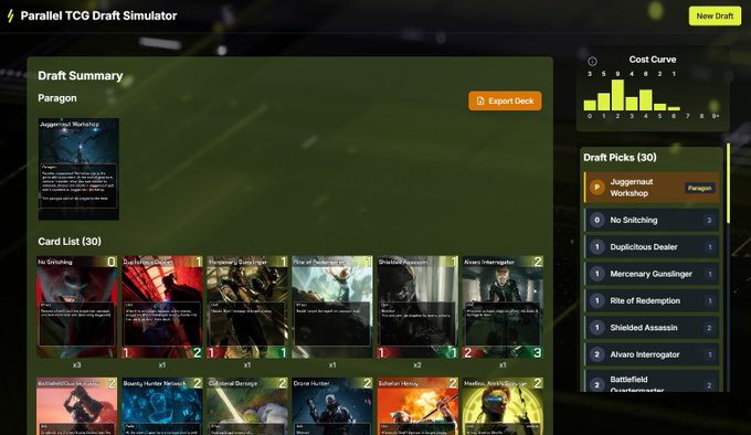 Huge shout out to the @ParallelTCG team for the new draft deck simulator. It's a really great idea, implemented extremely well, and points toward exciting things to come.