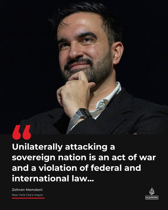 New York City Mayor Zohran Mamdani has criticised the capture of Venezuela’s Nicolas Maduro on X, calling it an 'act of war' and saying the 'blatant pursuit of regime change' affects not just those abroad, but also tens of thousands of Venezuelans in New York.