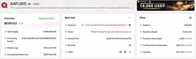 On-chain activity snapshot for #JST Transfers: 1,209 (+8.92%) Trading Volume: $26.17M (+3.24%) Liquidity: $11.92M (+0.09%) Consistent growth across usage, volume, and liquidity depth, a steady signal of healthy #DeFi activity on #TRON. 🔎View on-chain data: