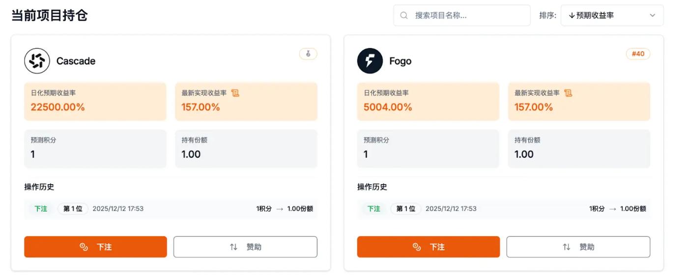 2. View details on the holdings page: Go to "My Predictions" - "Current Project Holdings" to view all holding details and historical records.