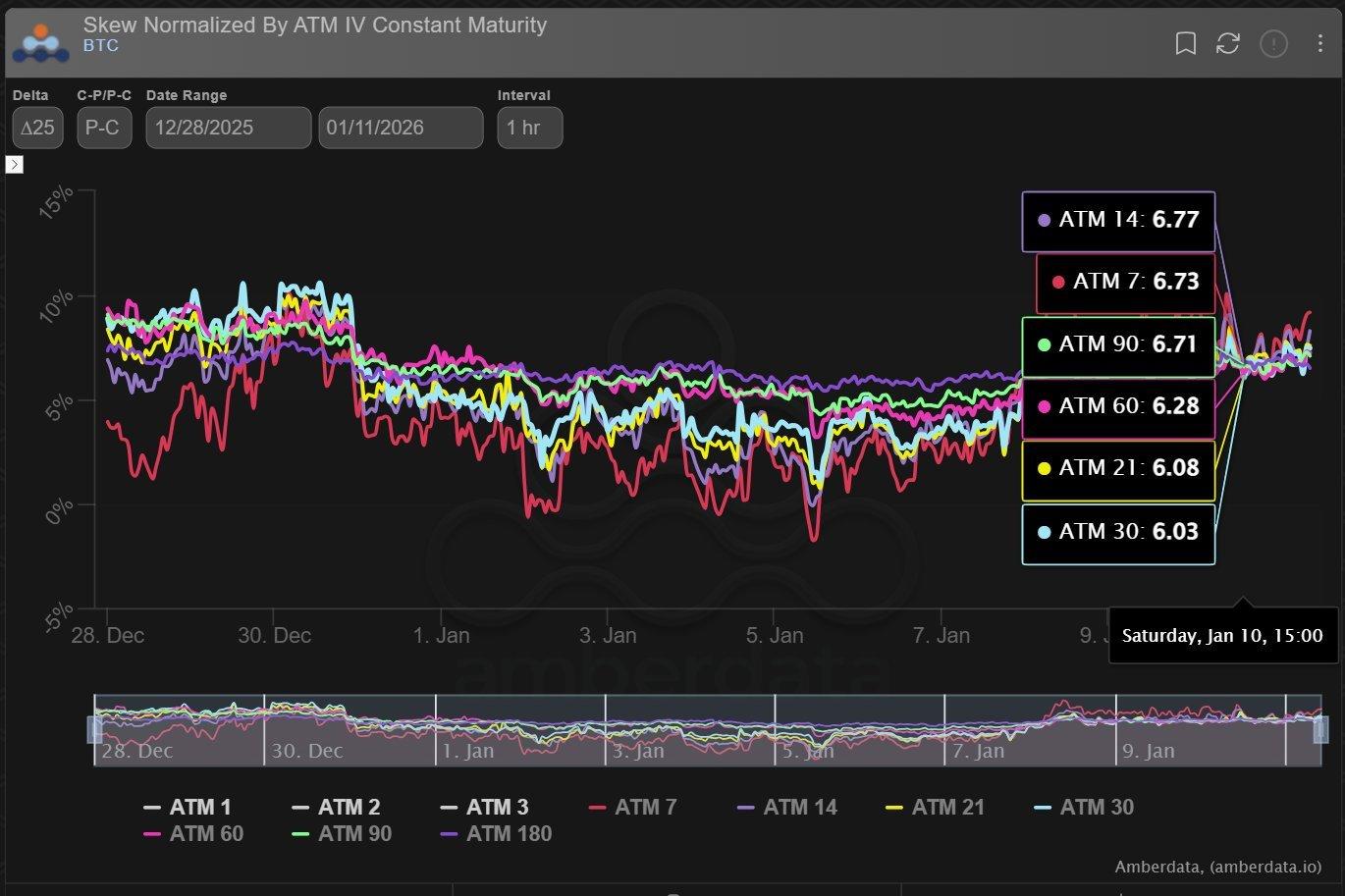25delta Skew has risen from an average of 4% Put premium back up to 7% as a consequence of the last few days’ flows.