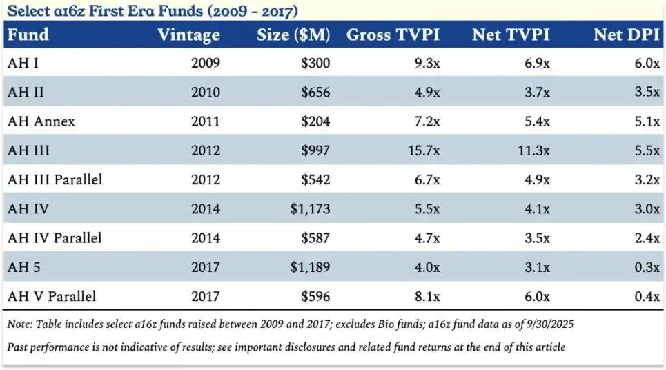 Core data of some funds from a16z during the first phase (2009-2017).