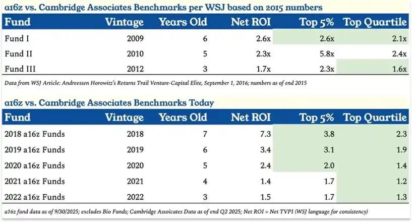 In 2016, The Wall Street Journal published an article that David Rosenthal of the Acquired podcast called "clearly a smear campaign orchestrated by fellow venture capitalists," titled "Andreessen Horowitz (a16z) Funds Lag Behind Venture Capital Elite." At the time, a16z's three funds had been established for 7, 6, and 4 years, respectively. The article claimed that while Fund 1 was among the top 5% in the industry, Fund 2 was only in the top 25%, and Fund 3 didn't even make the top 25.