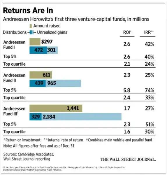 The performance of the top 3 a16z funds and a comparison with industry leaders.