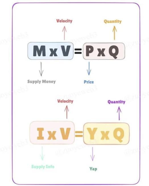 Within a certain period of time, such as when an XX Foundation launches an account and announces a massive fundraising, everyone, including retail investors, will recognize it as a prelude to a coin listing. At this time, interactive posts about the Yap project, such as investment research and discussions, will increase explosively, which will also affect the flow of information. You can think that the speed of information circulation is increasing rapidly, but the "effective" information will be inversely proportional to V/Y/Q in the above chart.