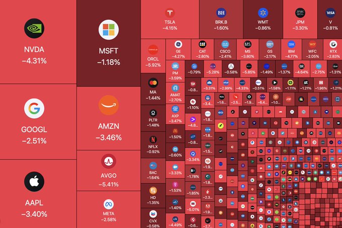 🚨$1.4 trillion wiped out from the US stock market today after Trump threatened EU tariffs over Greenland.