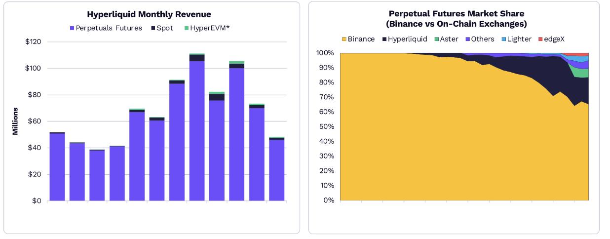 In the perpetual contract market, DeFi derivatives led by Hyperliquid are taking market share from Binance.
