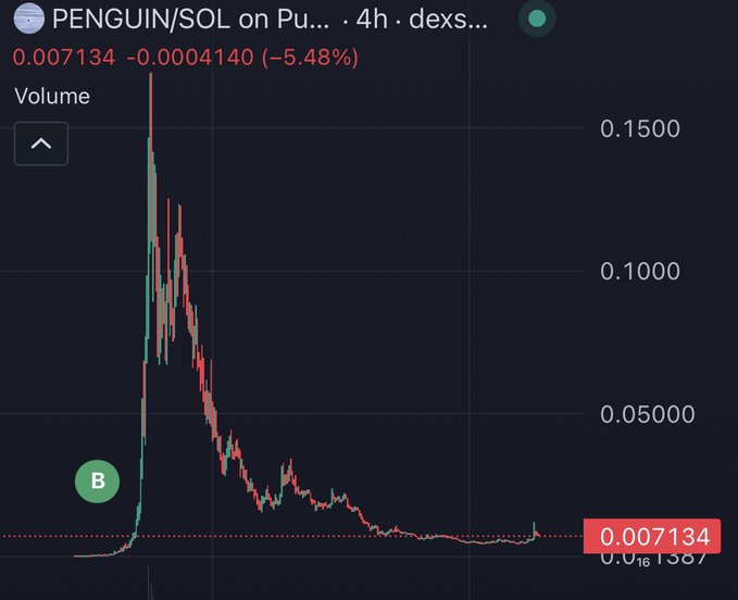 This wallet turned $578 into over $250,000 on $Penguin but never sold and is now $12,000 in profit.