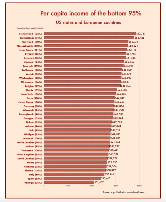 Interesting chart by Seth Ackerman that gives us another way of comparing European and American incomes. I've linked to it on the Chartbook Top Links of the day:
