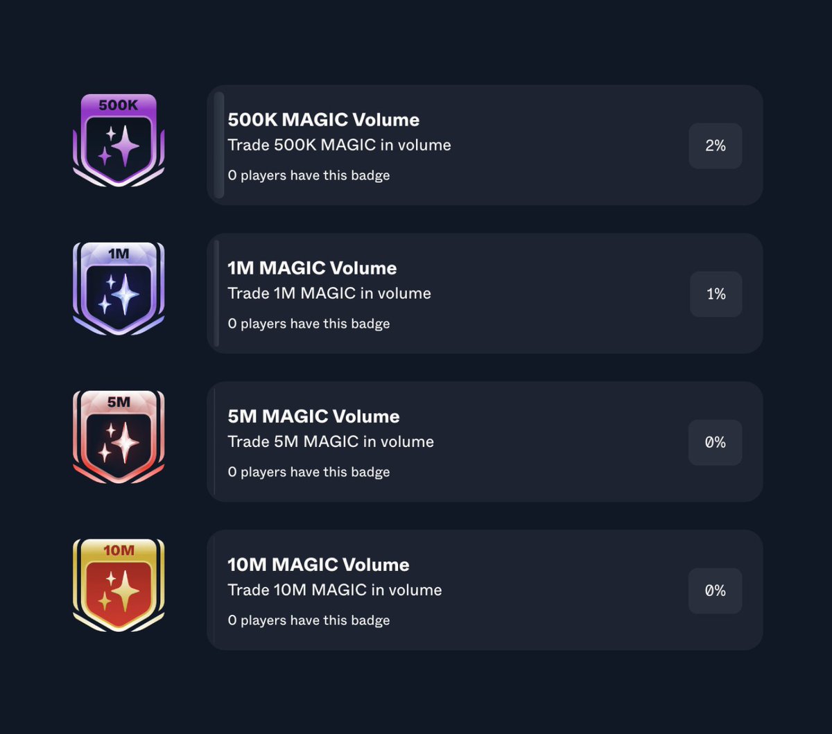 It's official - @wyze is the first to have claimed the 250K MAGIC Volume badge. Who will be the first to obtain 500K, 1M, 5M, or the legendary 10M badges? 👀 Let us see your new badges! #ProofOfPlay