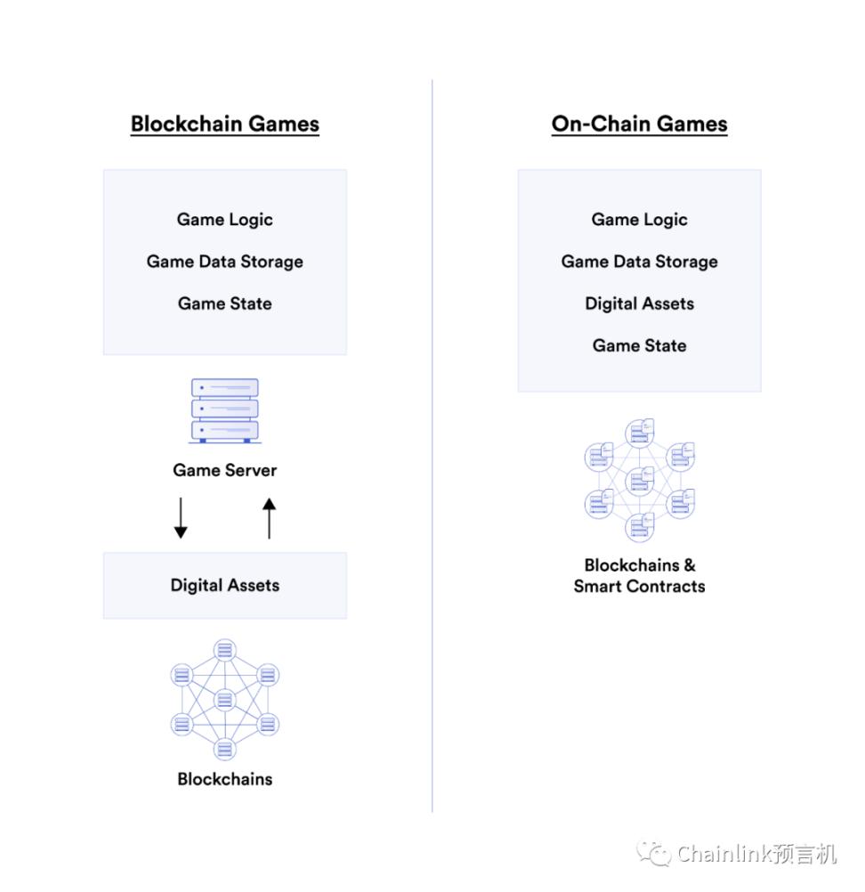Full-chain games store game logic and data entirely through smart contracts (note: smart contracts automatically execute lines of code on the blockchain).