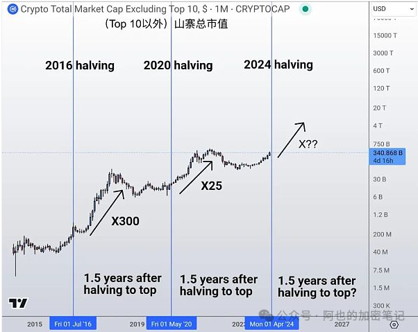 This is not only a big deal for BTC, but also for Altcoin. Before and after the halving, BTC share will reach a local high. Then as the bull market progresses, it will gradually fall. When the bull market is at its craziest, it will reach its lowest level. This means that Altcoin are competing to rise one after another, falling into a carnival called "altcoin season"!