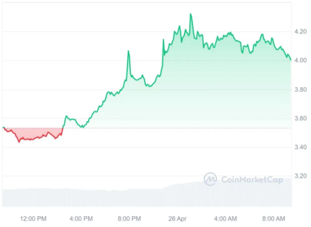 Currently, HNT is priced at $4.15, up 17.05% in 24 hours. Its market dominance is 0.03%, surging 124% over the past year. Helium is trading above its 200-day moving average at 83.47%, suggesting possible overbought conditions. Despite its 30-day volatility of 17%, liquidity remains strong with a volume-to-market cap ratio of 0.0407.