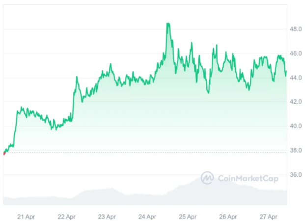 Today, the SSV token is valued at $44.99. EOS has also gained 3.14% over the past day. This growth is noteworthy as the SSV network is trading well above its 200-day simple moving average (SMA), which is $18.98. Additionally, the token’s market cap indicates strong liquidity.