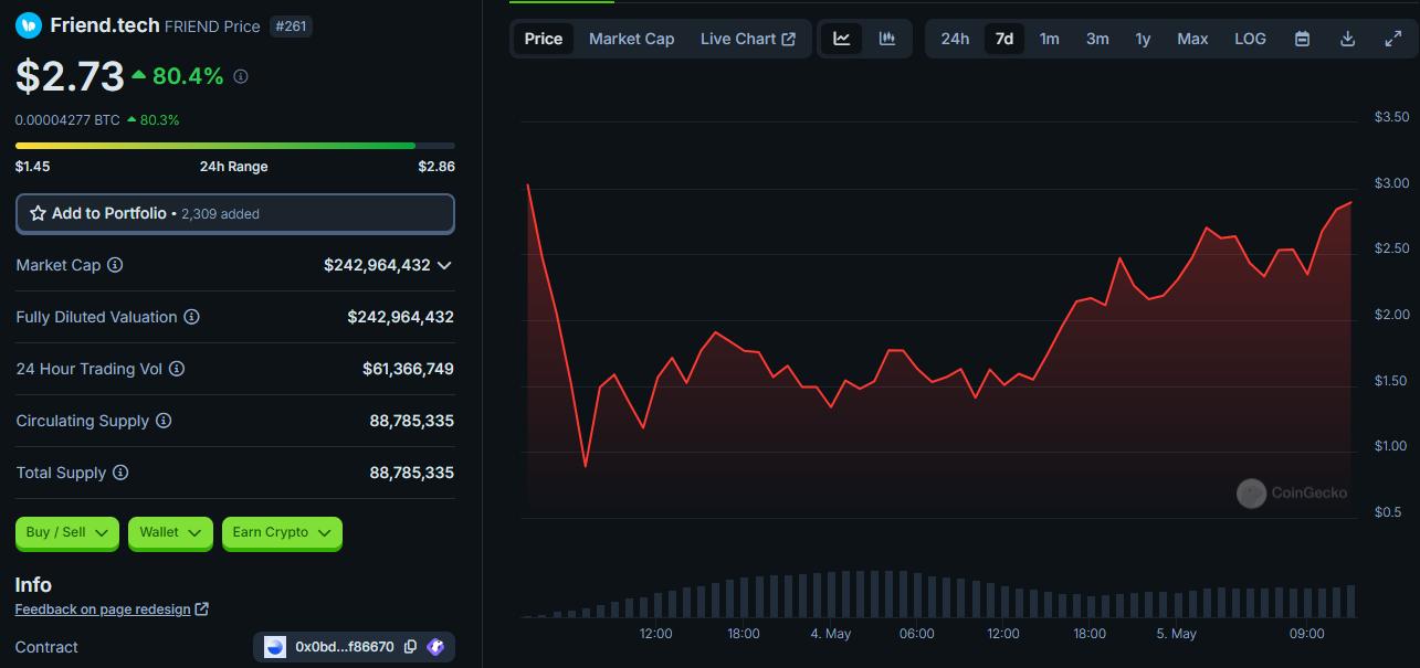 The market quickly realized this with the Friend.tech airdrop. After dumping to less than $0.90, FRIEND is up 200%. All FRIEND supply is already circulating.