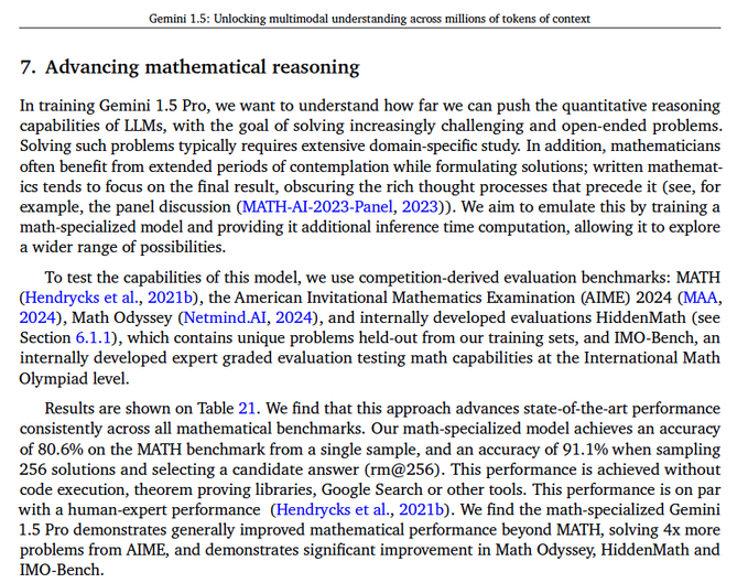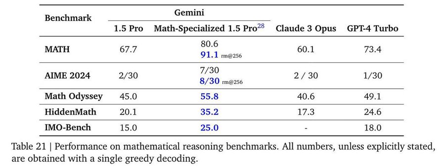 Gemini 1.5 Pro, the latest model from Google DeepMind @GoogleDeepMind, marks a significant achievement in AI capabilities. Notably, the math-specialized variant of Gemini 1.5 Pro has achieved a breakthrough performance of 55.8% on AGI Odyssey's maths benchmark without tool use,