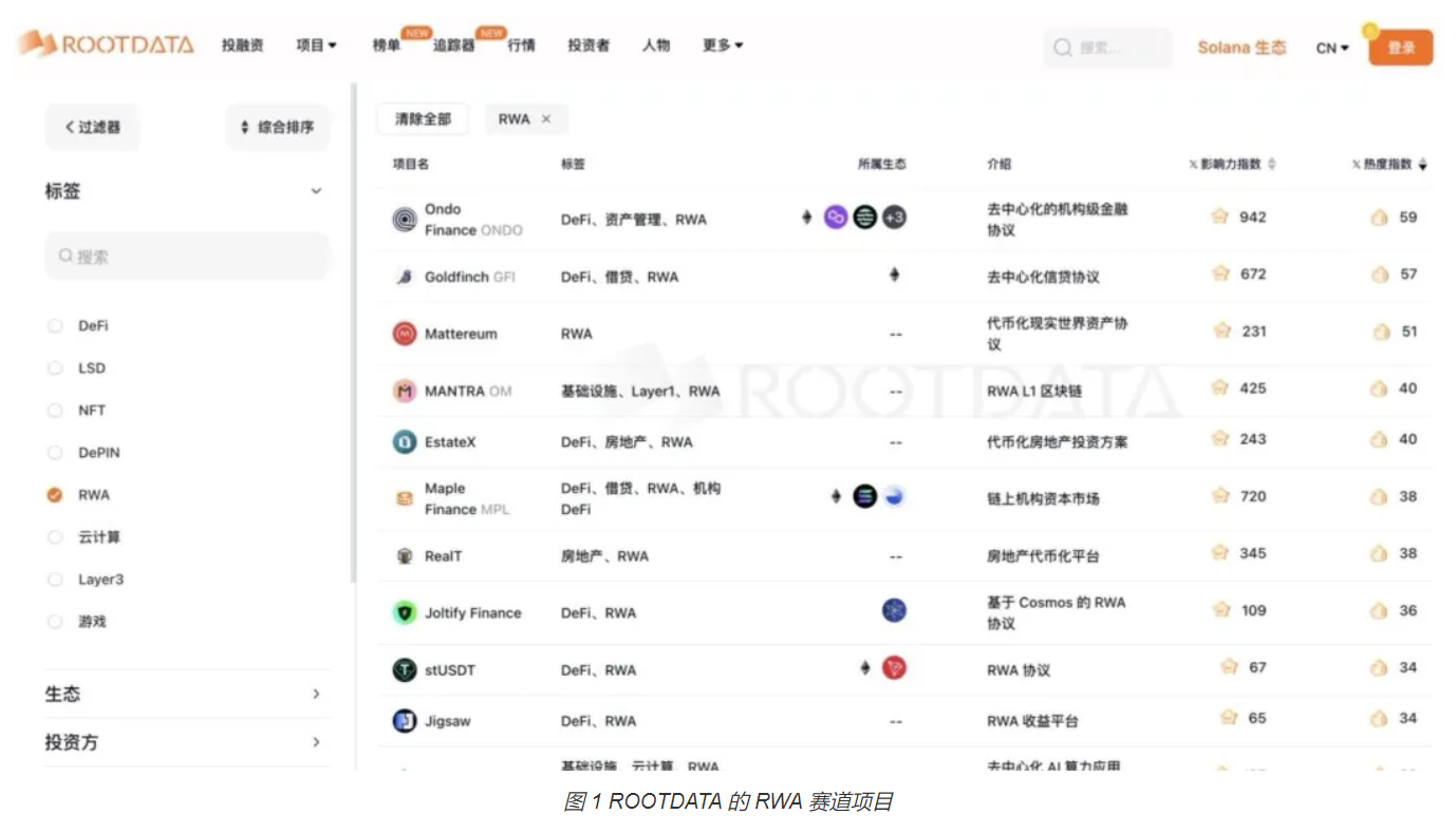 ROOTDATA의 RWA 트랙 프로젝트 목록에 따르면, 현재 RWA 트랙 프로젝트의 대부분은 여전히 이자 수익을 창출하는 모기지 자산인 전통적인 금융 상품의 Defi 제품 모델에 초점을 맞추고 있으며 엄밀한 의미에서 진정한 RWA 토큰화된 제품은 없습니다.