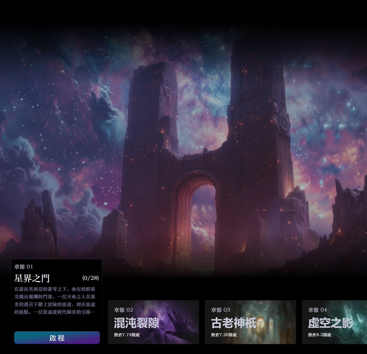 3. 별하늘 미션을 시작하고, 좌측 하단의 '스타 게이트'를 통해 미션에 입장한 뒤, 처음 몇 개는 웹 미션이고, 7번째부터 시작하는 미션은 순서대로 진행됩니다. 게임 미션.