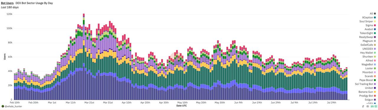 180일 이내 사용자 수(데이터 출처: https://dune.com/whale_hunter/dex-trading-bot-wars)