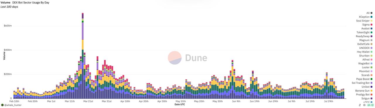 180일 이내 거래량(데이터 출처: https://dune.com/whale_hunter/dex-trading-bot-wars)