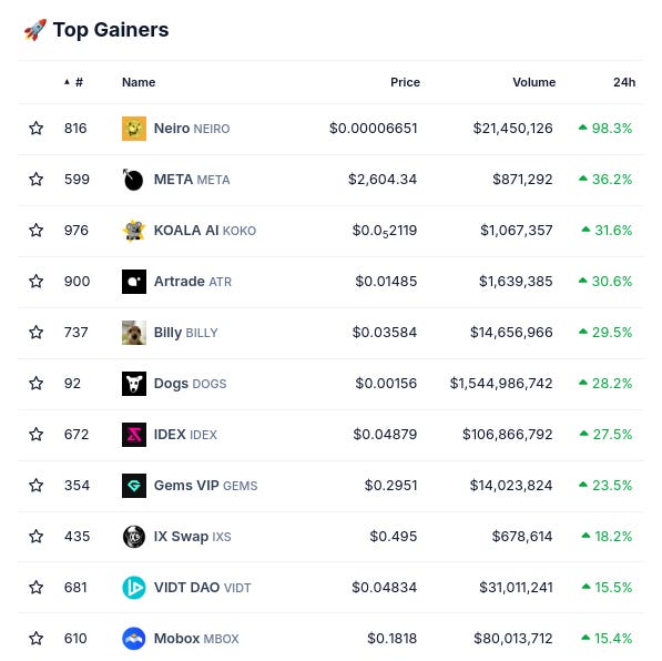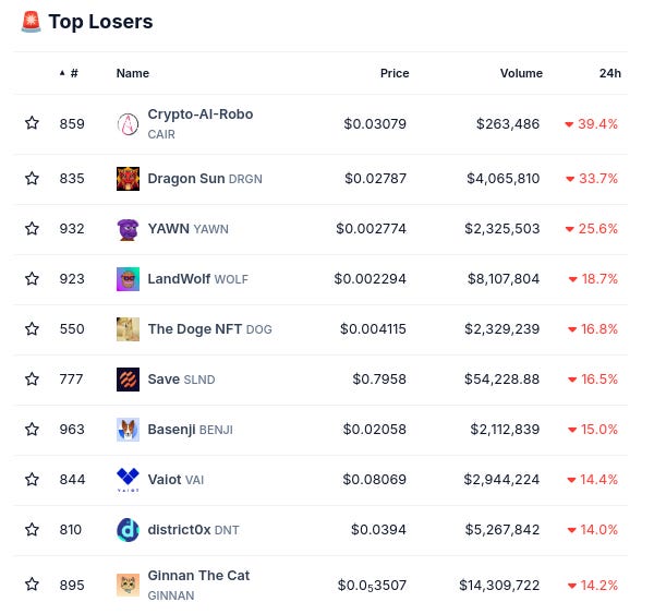 (24시간 변화로 @coingecko 상위 1000위에서)